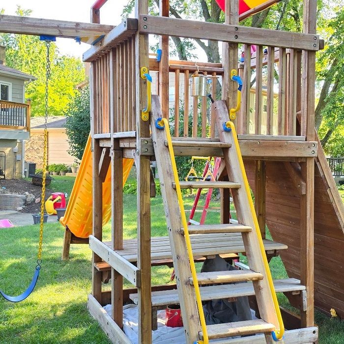 The process starts with sanding to remove old finishes, smooth rough spots, and open the wood grain for better stain absorption. Power washing or chemical cleaners remove dirt, mildew, and graying caused by UV exposure. In Naperville, where decks and fences face heavy seasonal wear, this prep step is essential for long-lasting results.